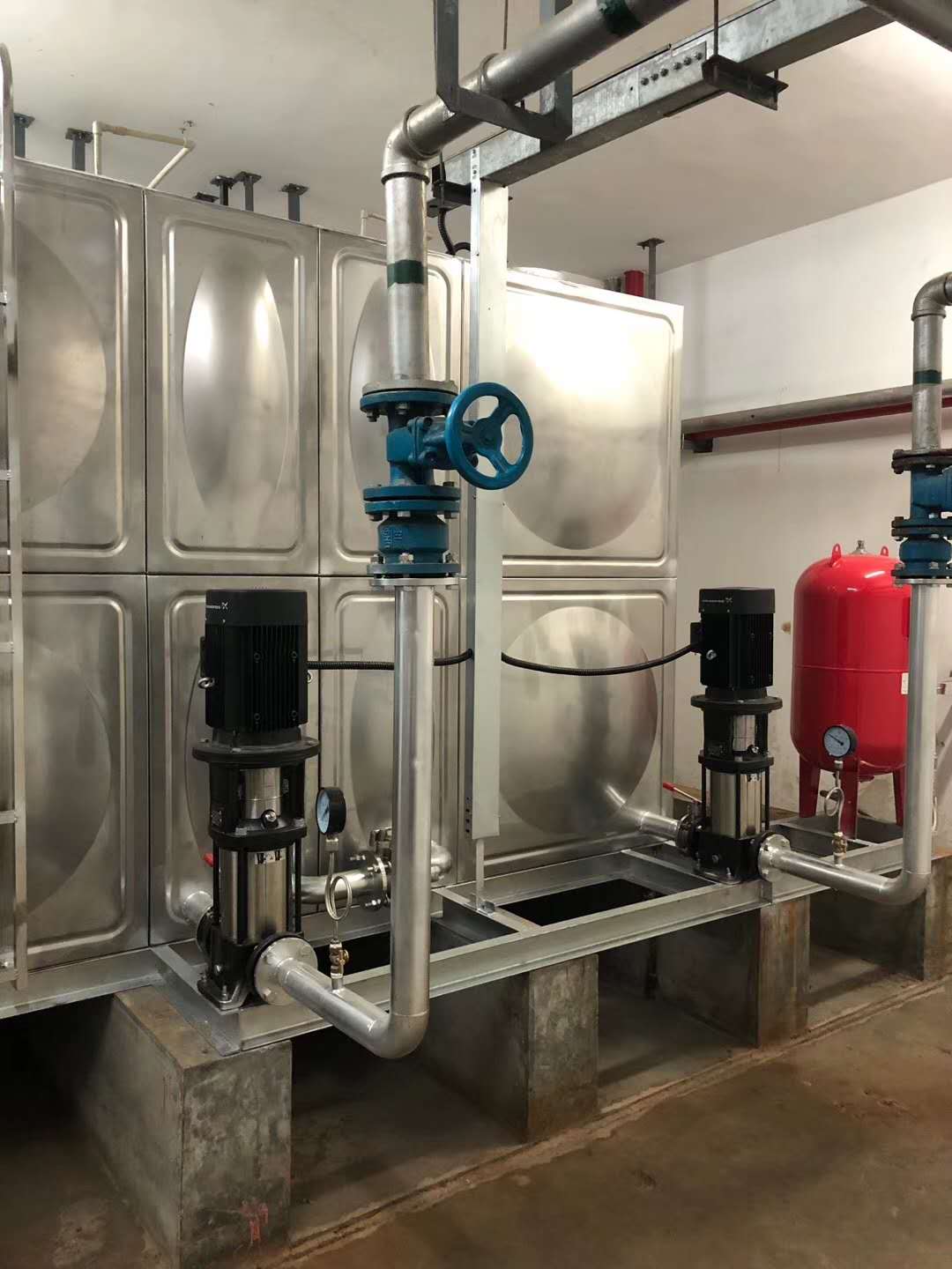 上海航天項(xiàng)目:加班安裝變頻供水設(shè)備及不銹鋼水箱,全部安裝調(diào)試結(jié)束,同事們辛苦了!